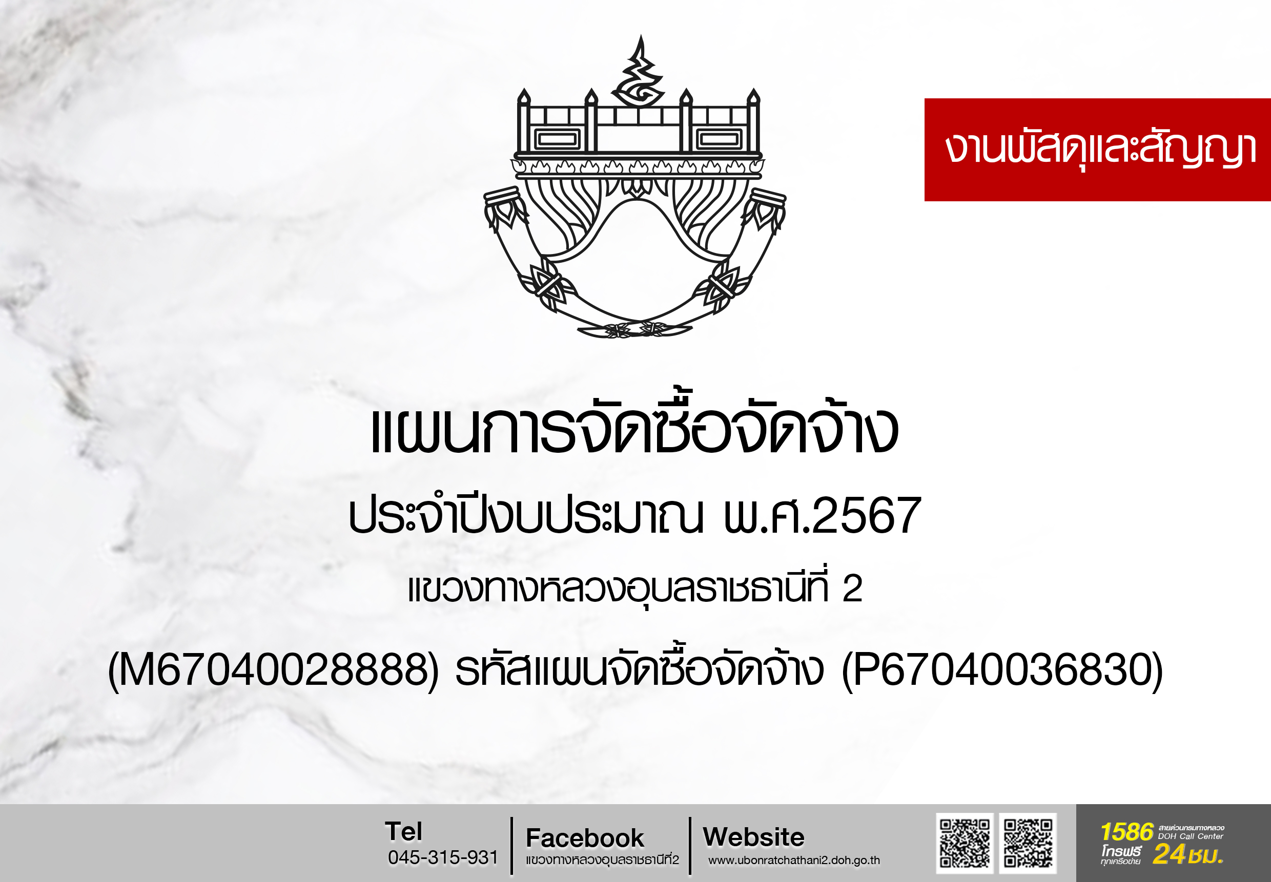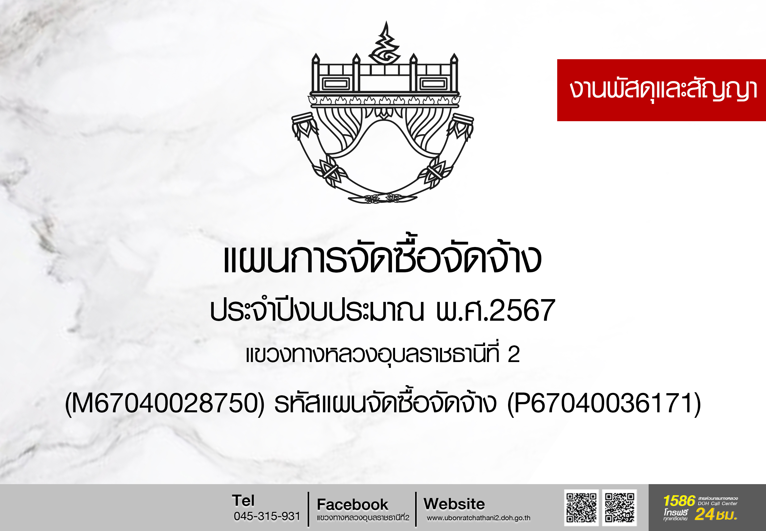 แผนการจัดซื้อจัดจ้าง ประจำปีงบประมาณ พ.ศ.2567 29 มีนาคม 2567 (M67030043080) รหัสแผนจัดซื้อจัดจ้าง (P67030063131)