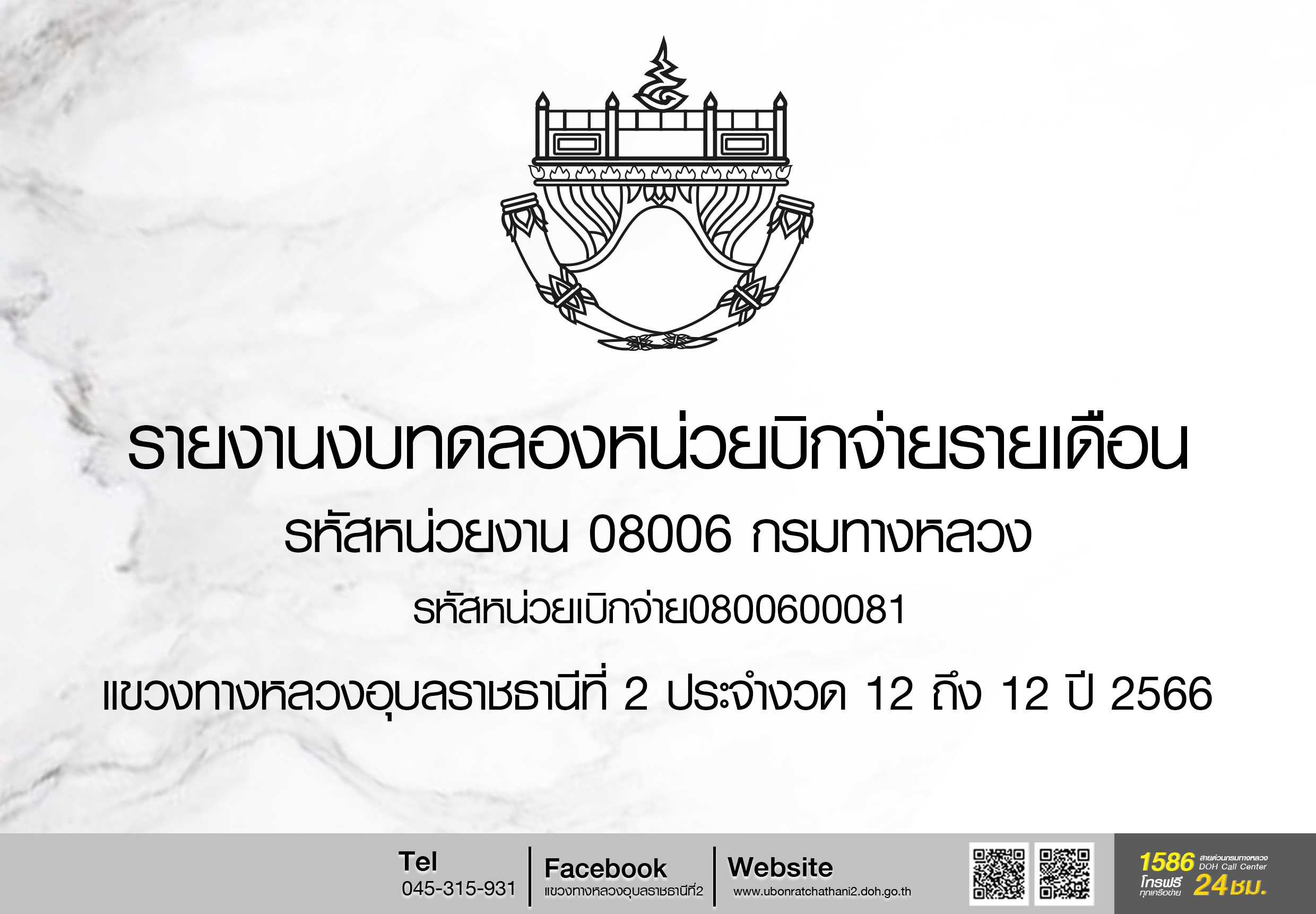 รายงานงบทดลองหน่วยบิกจ่ายรายเดือน รหัสหน่วยงาน 08006 กรมทางหลวง รหัสหน่วยเบิกจ่าย 0800600081 ขท อบ 2 ประจำงวด 1 ถึง 1 ปี 25667