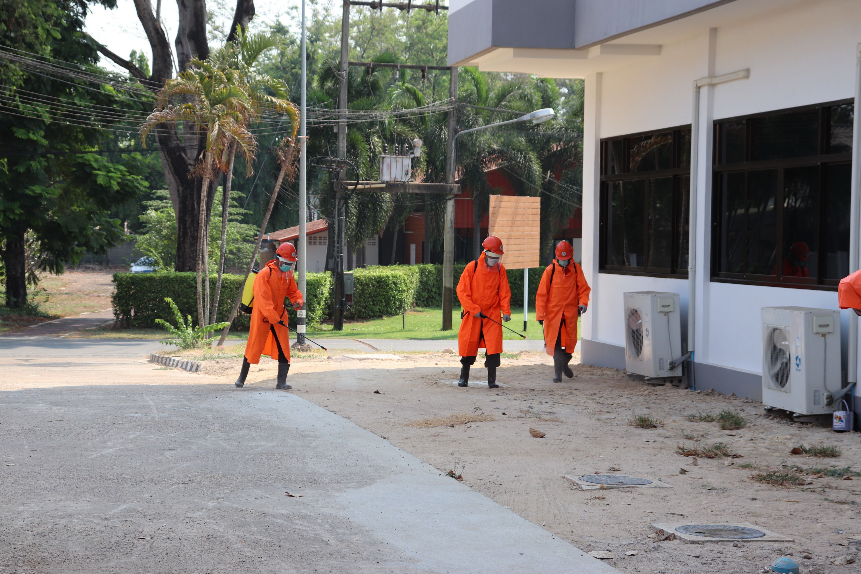 ข้อมูลภาพกิจกรรม : ดำเนินการป้องกันการแพร่ระบาดของเชื้อไวรัส COVID - 19 โดยการฉีดพ่นน้ำยาฆ่าเชื้อไวรัส COVID - 19 ภายในบริเวณแขวงทางหลวงอุบลราชธานีที่ 2