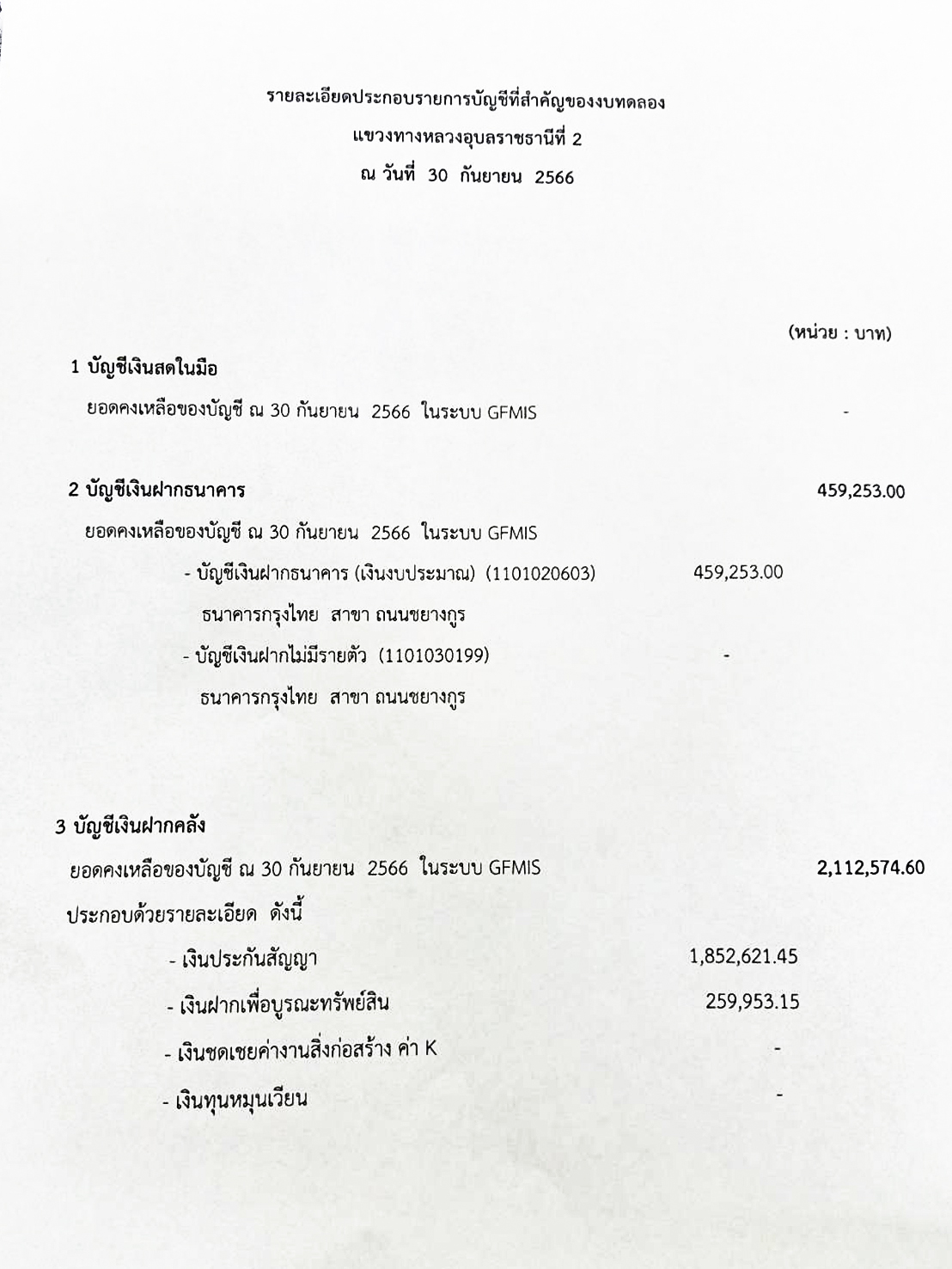 รายละเอียดประกอบรายการบัญชีที่สำคัญของงบทดลอง แขวงทางหลวงอุบลราชธานีที่ 2 ณ วันที่ 30 กันยายน 2566